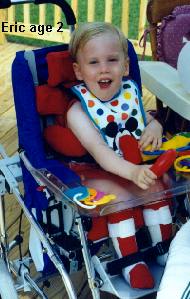 Eric and his identical twin brother, Aaron, were born on July 28, 1993, at 26 weeks gestation. Both had many of the common complications of prematurity. Eric’s most serious complication was and is periventricular leukomalacia, or PVL.