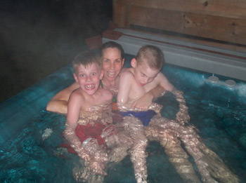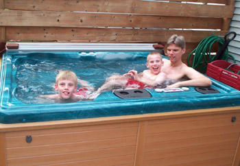 Eric's First dip in his Cinderella Pool with Aaron and Dad