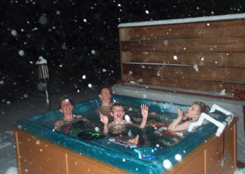 Eric love's going in the hot tub when it's cold outside, he especially loves the snow!