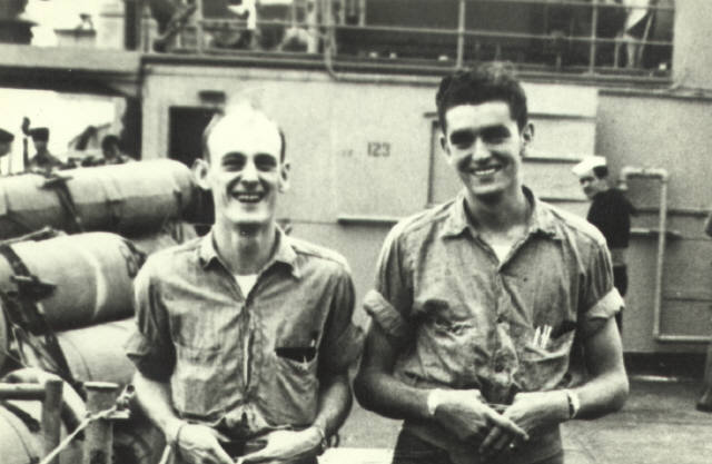 Great granduncle Fran Leblanc (right) aboard ship during WWII