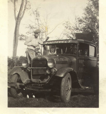 Bissell Family, grandmother Velda, grandfather Russell holding